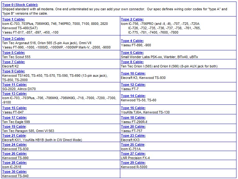 (PSK-31), QPSK, RTTY, RTTY/R, CW (keyboard, paddle & reader) and CW Direct (with CW-only rig). Other digital modes