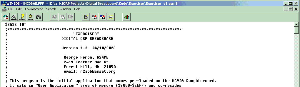 3) Make the Desired Edits -- Now that you've opened up a source file (e.g., the Exerciser_v1.asm shown here) you'll be able to browse through it using standard and common Windows operations and edit the source code as needed.