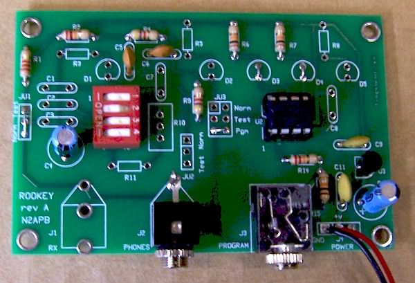 Designers N2CX and N2APB developed the Remote On-Off-Keyer "Rookey" project as a simple way to handle remote control needs around the radio shack. Realizing that we hams are a frugle lot, we designed a low-cost, yet reliable system to generate specially-coded audio tones that could be delivered to a remote location over a transport medium and decoded there to control multiple functions. The result is the Rookey Kit consisting of an "encoder" board and a"decoder".