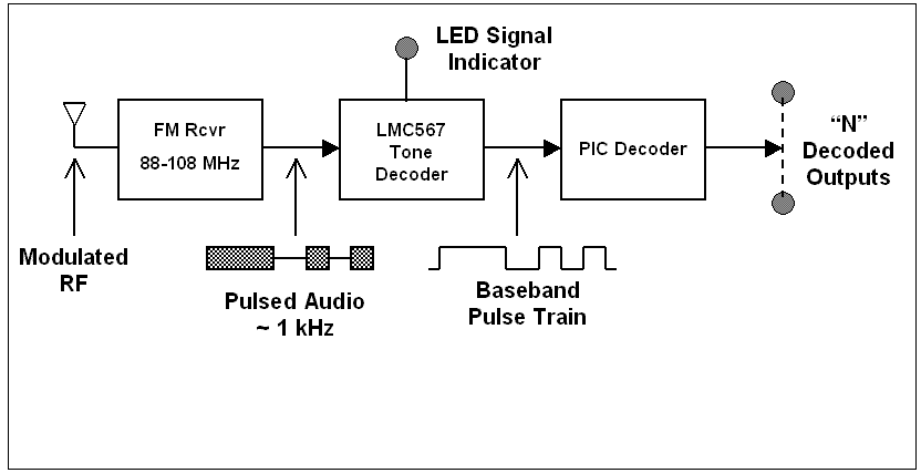 transport medium, the FM radio receives the tone-encoded R/C transmission and delivers