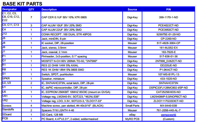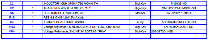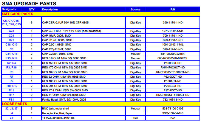 Download Schematic PDF SNA Kit "Bill of Materials" - Rev A, June 19, 2015 NOTE (8/25/2015) ... Newly-supplied values for R2 (180), R3 (390), R15 (4.7 or 6.8), and C5 (10uF).